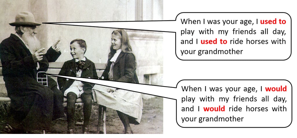· The two sentences from the picture are equivalent (Remember you can't use WOULD with past repeated actions with non-action verbs, for example, we don't say "When I was young, I would live in Hermosillo", we say "When I was young we used to live in Hermosillo)