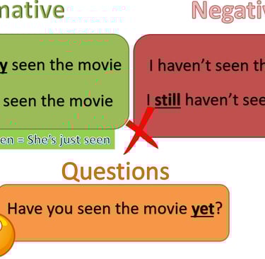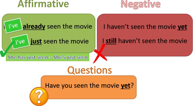 PRESENT PERFECT SIMPLE FOR COMPLETED (ALREADY), UNCOMPLETED (YET) AND RECENT (JUST) ACTIONS